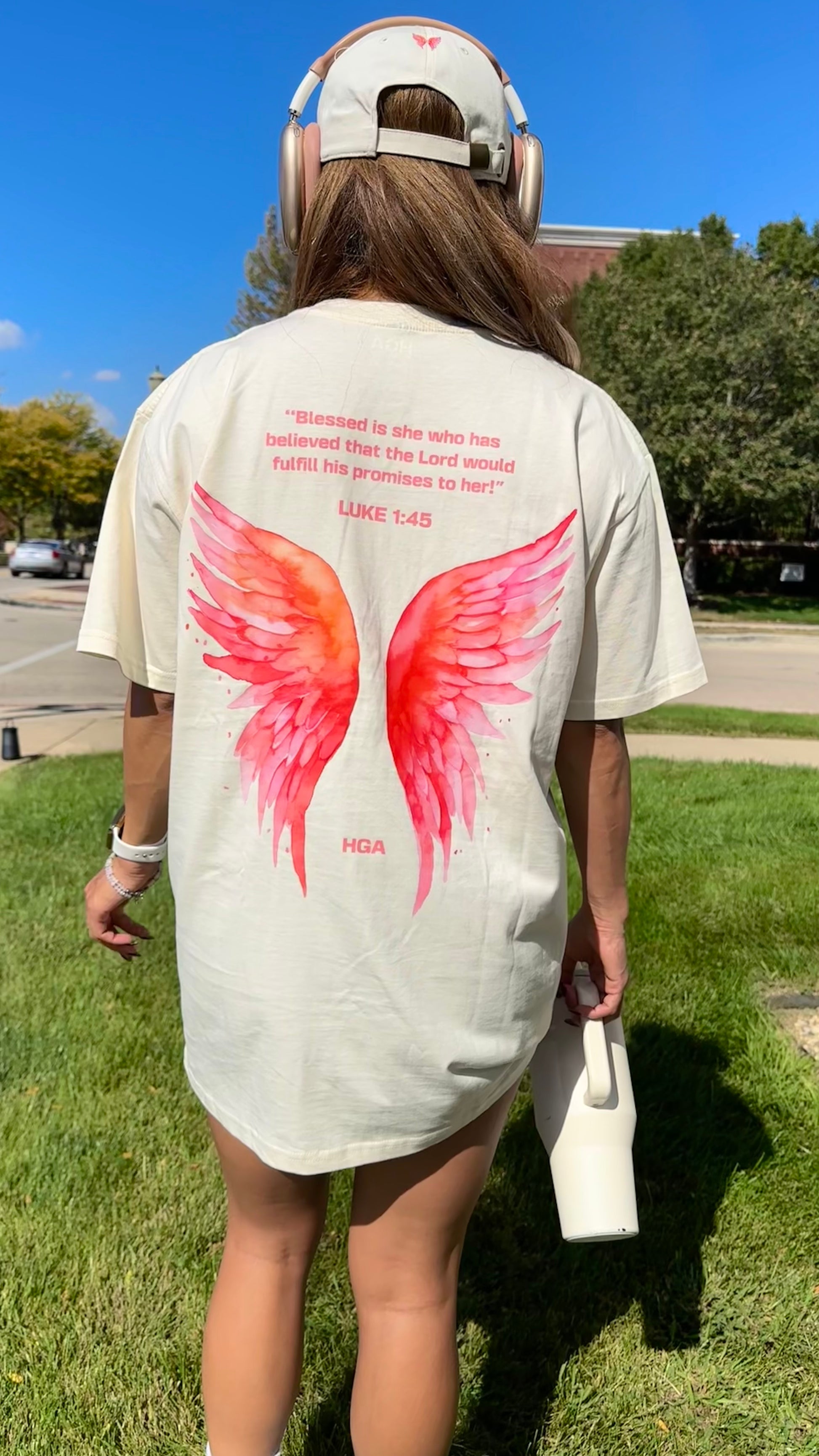 Designed for women who walk in faith, fight in prayer, and flourish in grace, the Daughter of the King of kings Tee wraps heavenly truth in bold feminine flair. The front features a soft and stunning blend of butterflies, florals, and fragrance — while the back declares Luke 1:45 over your life: